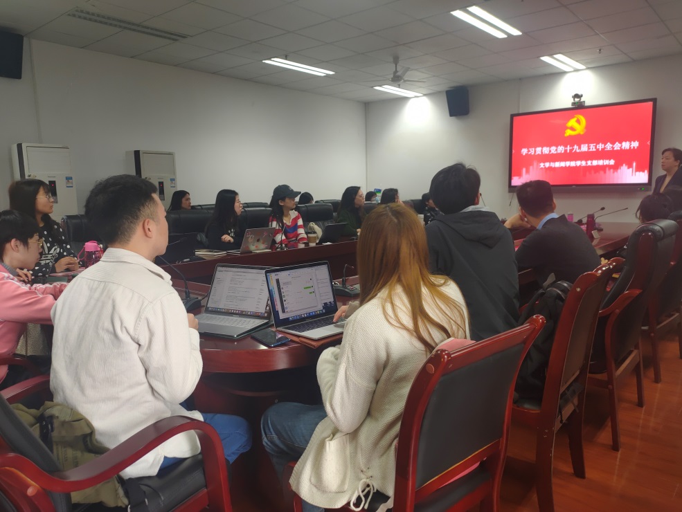 2020年11月11日中午,我院2020年学生党支部书记培训班开班仪式暨“十九届五中全会”精神专题党课学习在文科楼一区418室举行。会议由学院党委副书记兼纪委书记张莹主持,学院党建组织员成春教授主讲。会上,成春教授作了题为“学习贯彻党的十九届五中全会精神”的培训宣讲。成春教授讲解了十九届五中全会的重要性,并围绕主题,就形势背景、工作回顾、会议亮点、公报要点等方面进行了解读。她指出,学生党支部应在十九届五中全会精神的指导下,理论联系实际,加强学习与交流,切实发挥党员先锋模范作用,将会议精神转化为学生党支部的凝聚力与行动力。