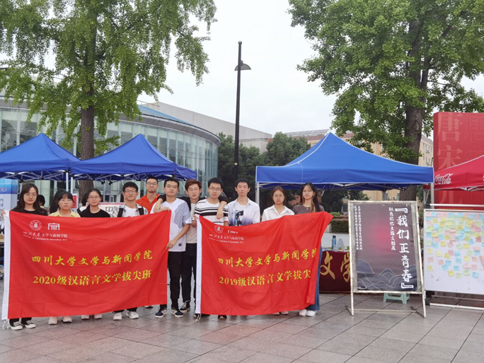 我院2019级、2020级汉语言文学拔尖班团支部于2021年9月24、25日联合举办了“请党放心,强国有我”主题团日活动,在江安校区青春广场进行相关的红色记忆主题文创展。