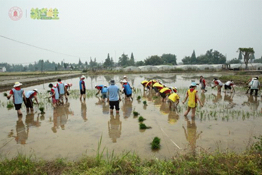 师生一起插秧