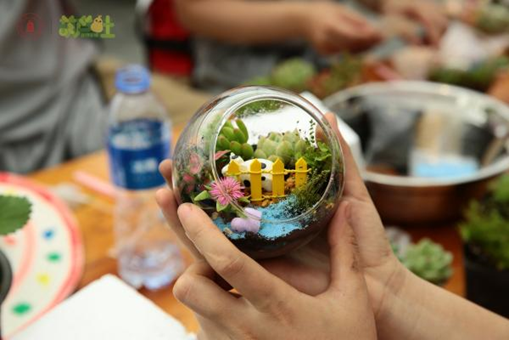 午后,同学们开始了DIY苔藓生态盘的创作。大家小心翼翼地挑选苔藓、植物和装饰物,精心打造出一个个独具特色的生态小景。