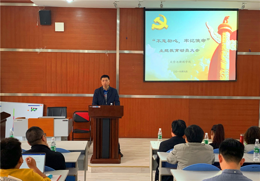 文学与新闻学院党委书记古立峰作动员讲话,党委副书记张莹主持会议。学院党政班子成员,全体教职工党员,学校第八次党代会代表,市级以上人大代表、政协委员,各教研室负责人,离退休党员代表,学生党员代表及民主党派代表参加会议。