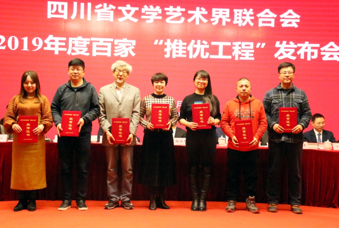 曹峻冰教授(左二)领取2019年度四川省文联百家“推优工程”文艺
