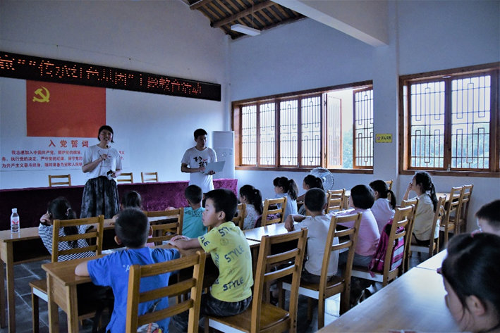在回顾、学习历史,激励自我的同时,彭笑秋同学在本次社会实践中学以致用,深度参与,收获良多。8月11日,彭笑秋跟随长宁县梅硐镇政府工作人员前往位于泽鸿村的余泽鸿烈士纪念馆参观,在全面细致地了解余泽鸿烈士在川南特委的革命工作和长宁人民在红军战士影响下积极投身革命的斗争事迹后,她前往长宁县党史研究室查询有关资料,对这段历史进行了详细梳理。在此基础上,彭笑秋也深挖红色文化资源的教育价值,参与了由共青团中央发起的“童心港湾”留守儿童关爱计划。8月23日,她再次前往泽鸿村,在当地“童伴妈妈”杨小琴的帮助下开展“传承红色基因”主题教育活动。彭笑秋认为自己在此次社会实践中,除了受到余泽鸿烈士精神的激励,也明白了充分利用本地红色资源,讲好身边的红色故事,能够让学生更好地接受红色文化熏陶,提升教育效果。