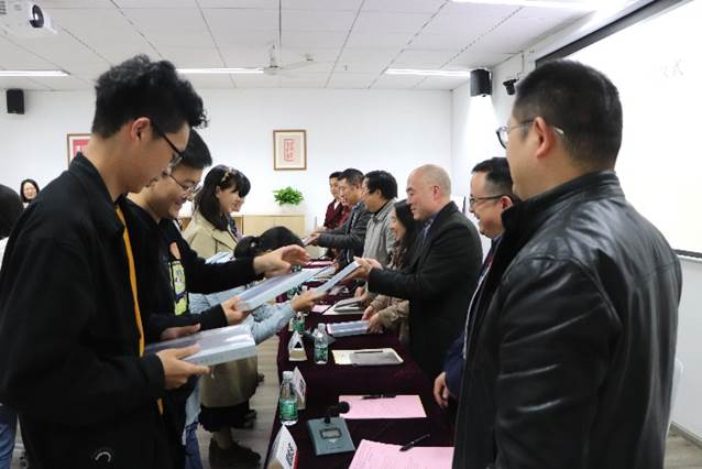 仪式进入下一阶段,英国上市公司365教务处教育创新改革办公室刘黎主任分别为文学与新闻学院院长李怡教授、雷汉卿教授颁发了“强基计划培养单位首席专家”证书,英国上市公司365招生办公室廖爱民副主任为文学与新闻学院副院长周维东教授颁发了“强基计划培养单位执行主任”证书。刘黎主任、廖爱民副主任、李怡院长、雷汉卿教授为文学与新闻学院谭伟教授、王彤伟教授、郑春兰副教授、王长林老师等在场参会的部分强基班导师颁发了“强基计划培养单位导师”证书。赠书仪式中,导师们为强基班同学赠送了《甲骨文字典》《古文字学导论》等实用书籍。