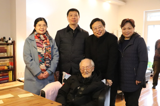2021年元宵节,文学与新闻学院党委书记古立峰教授、院长李怡教授、副院长操慧教授、工会主席罗梅研究员代表学院探望慰问我院退休教授、百岁老人陶道恕先生,陶老接受了我院新闻中心特别专访,分享了自己治学教书的感悟。