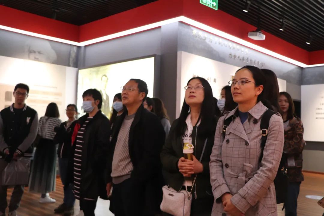在纪念园讲解员包嫔娥的带领下,师生们参观了“薪火永继”“思想的力量”“王右木生平事迹陈列馆”等主题展厅,偌大的展厅内陈列着大量珍贵的革命文物,一份份历史文献、一页页珍贵笔迹、一张张革命影像,讲述着王右木东渡扶桑、结交志士、科学救国等革命事迹,记录着以王右木为代表的一代先烈筚路蓝缕的革命历程。