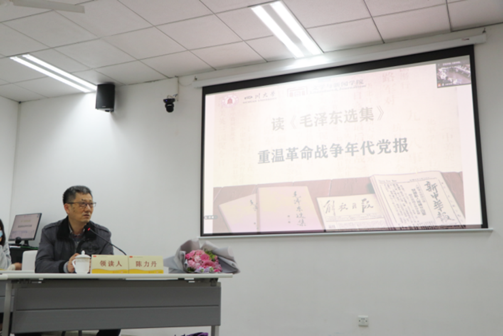 读书会现场,我院六名同学和刘娜副教授,以及新华社四川分社记者吴晓颖先后就《毛泽东选集》文章和党报报道的阅读心得发言,他们从报道文本、新闻实践、新闻思想等不同方面分享了自己的学习感悟。