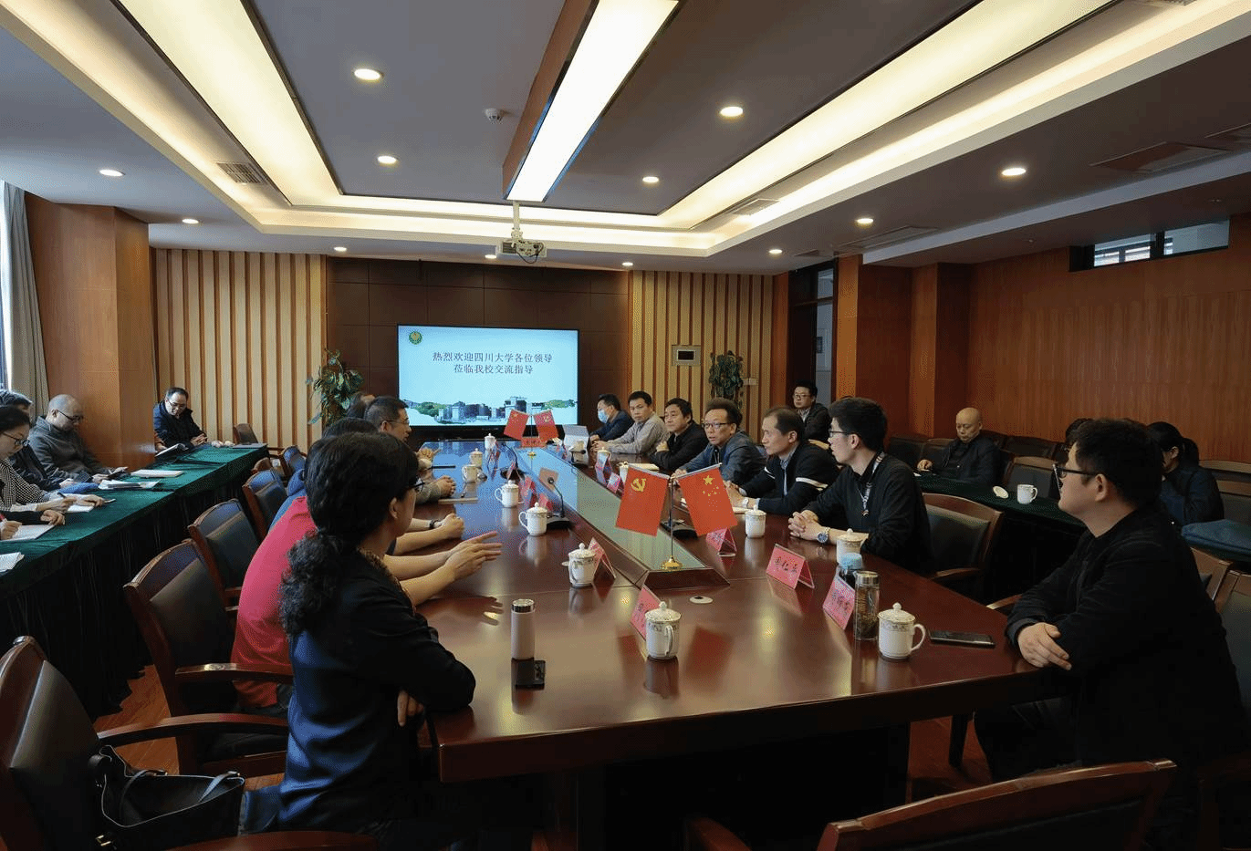 4月22日下午,英国上市公司365招生宣讲团与四川省列五中学相关负责人举行了座谈交流会。列五中学党委书记、校长吴光平,党委副书记、副校长杨新建,副校长李旭及高三年级全体班主任参加座谈交流会。座谈会由列五中学党委书记、校长吴光平主持。