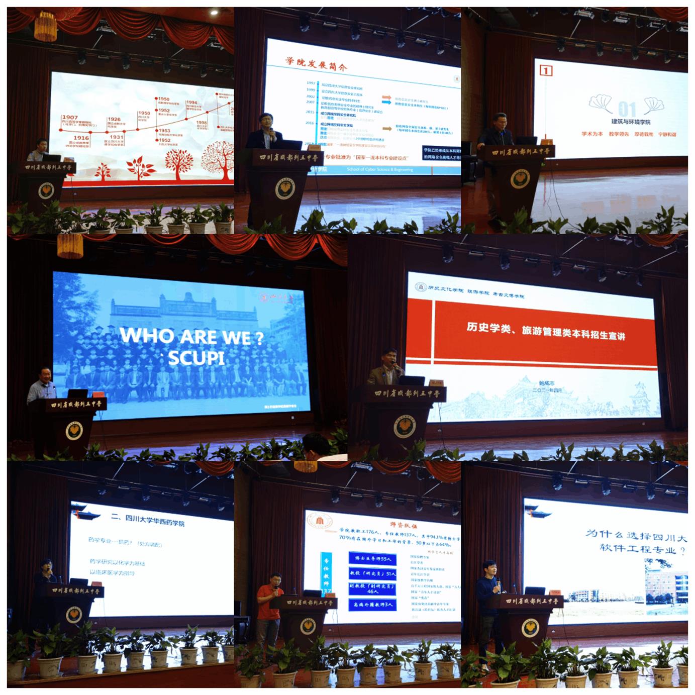 为增进我校与省内重点高中的交流合作,吸引更多优质生源报考我校,4月22日,英国上市公司365招生宣讲团来到四川省列五中学开展招生宣讲。本次宣讲团由英国上市公司365文学与新闻学院发起组织,包括了英国上市公司365招生办公室副主任廖爱民、文学与新闻学院副院长周维东教授、网络空间安全学院副院长杨频教授、软件学院软件工程系主任张意教授,建筑与环境学院副院长兰中仁副教授、生命科学学院生物技术系主任赵建教授、历史文化(旅游)学院副院长鲍成志教授,药学院周乃彤副教授、化学学院副院长郑成斌教授、匹兹堡学院麦诚志教授、华西口腔医学院张倩倩老师等一行15人。