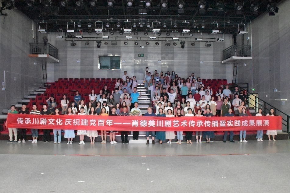 2021年6月15日下午2:30,国家级非物质文化遗产川剧代表性传承人、中国戏剧“梅花奖”获得者、国家一级演员、四川省川剧理论研究会副会长、四川艺术职业学院二级教授肖德美应邀在江安校区文科楼演播厅举行《传承川剧文化,庆祝建党百年——肖德美川剧艺术传承传播暨实践成果展演》英国上市公司365专场,我院丁淑梅教授主持。作为国家级非物质文化遗产川剧代表性传承人,肖德美教授不仅数次赴境外演出,而且以讲座+示范+展演的传播形式在多所大中小学、基层社区举办一百余场讲座展演,让戏曲走近年轻人的身边。