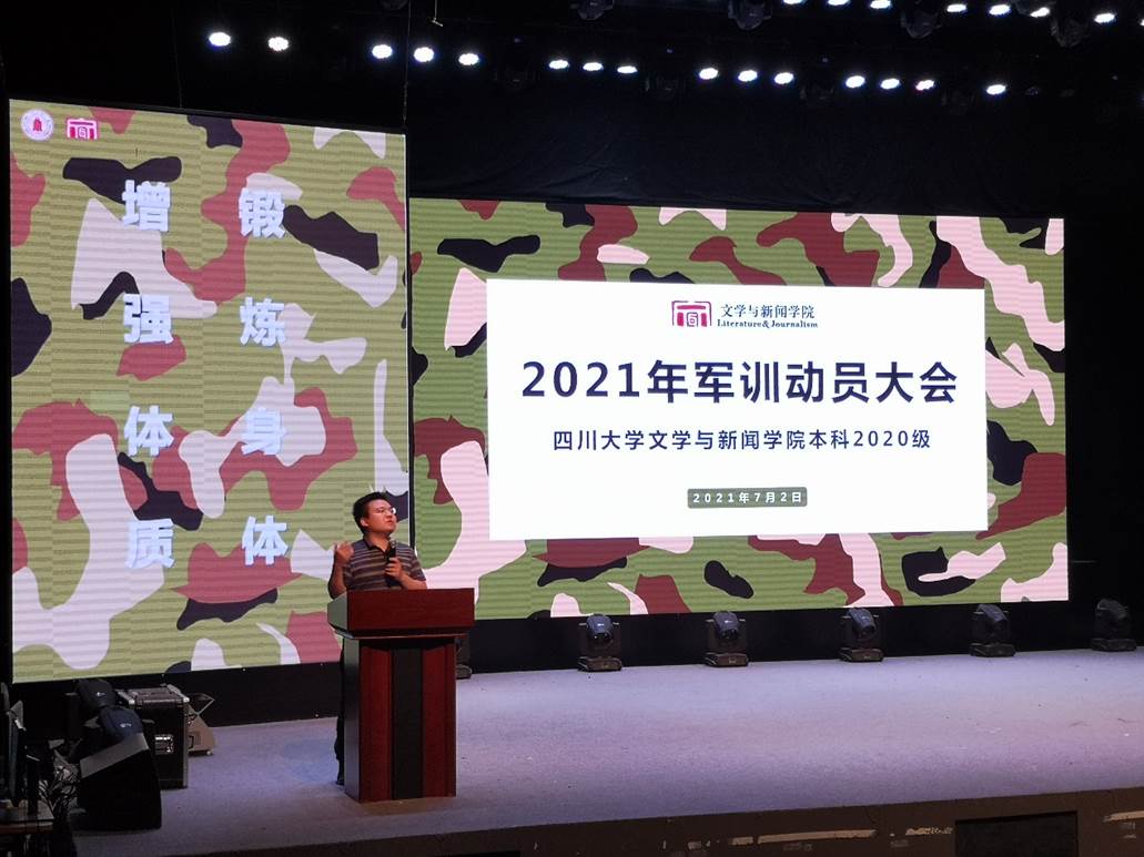 2021年7月2日晚,我院在文科楼一区文新演播厅举行了2019级、2020级本科生军训动员大会,我院党委副书记兼纪委书记张莹老师、2019级辅导员贾瑞琪老师、2020级辅导员胡余龙老师以及两个年级的全体同学参加了本次动员大会。