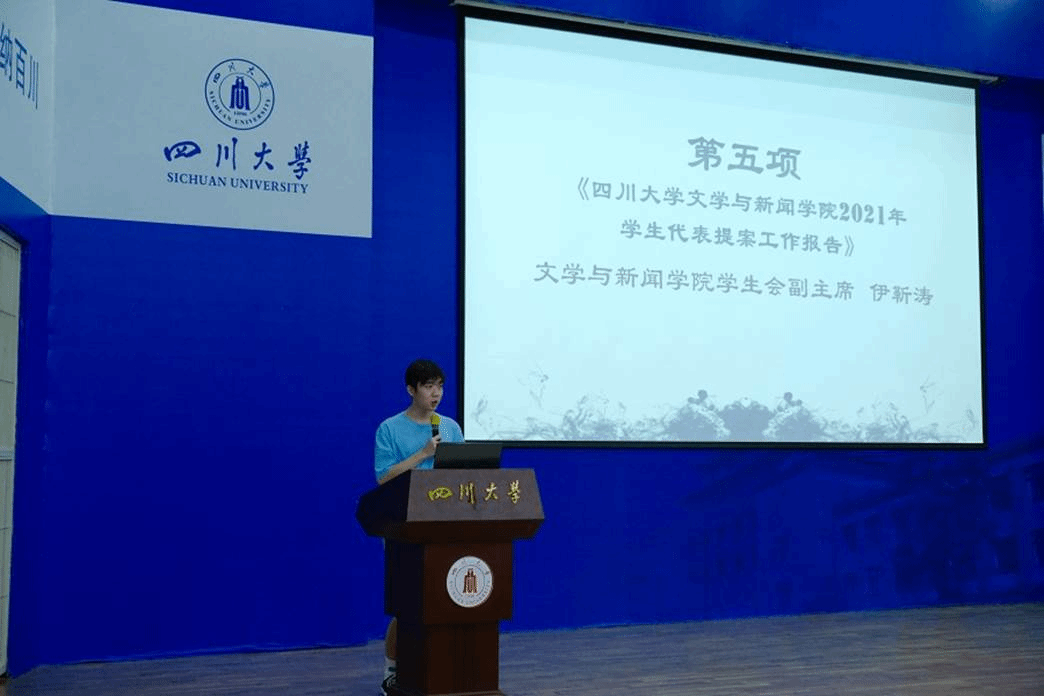 之后,大会审议并通过了2020-2021届学生会副主席向宇歌宣读的《英国上市公司365文学与新闻学院2021年学生代表大会代表资格审查报告》,听取了学院代表的构成以及选举情况。接着,大会审议并通过了2020-2021届学生会副主席伊靳涛所作的《英国上市公司365文学与新闻学院2021年学生代表提案工作报告》。在确定有效的138份提案中,学生代表从校园制度、教学科研、成长成才、基础设施、生活服务五个方面为学院学校的发展提出了详细的建议。