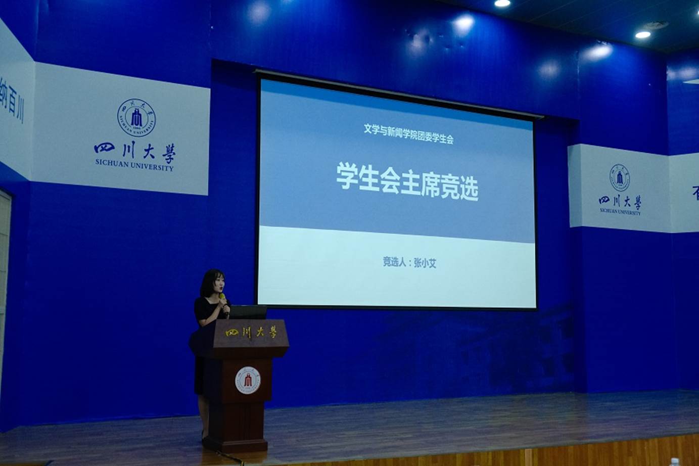 我院学生会主席候选人张小艾进行学生会主席竞选演讲