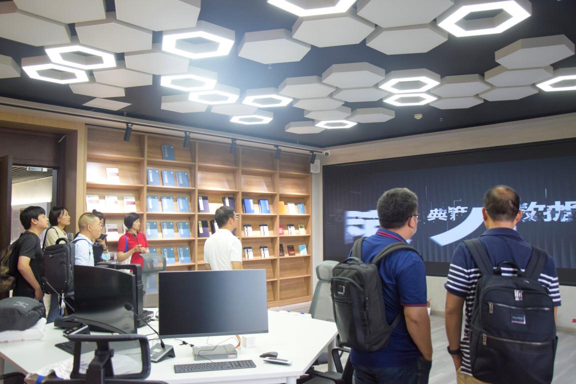 座谈交流结束后,双方合影留念。我院副院长胡易容陪同中国人民大学新闻学院来访老师参观了我院中华文化传承与全球传播数字融合实验室。