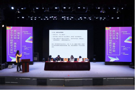 随后,大会主题报告在文科楼演播厅展开。主题报告由2018级汉语国际教育专业崔逸灵同学主持,周维东教授任评议人,2018级汉语言文学专业的张瑜倩、王琨岚,2018级汉语言基地班傅灵钺,2019级汉语言文学拔尖班盖恒熙分别以学术报告的形式汇报了论文。