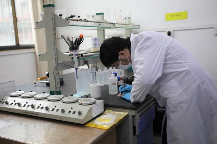 在实验室做实验的邓鸿杰
