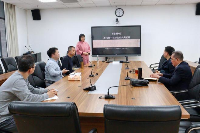 2022年4月20日上午,我院为即将代表学校参加四川省青年教学比赛的戴莹莹副研究员举行了相关教学讨论会。我院党委书记古立峰教授、讲席教授王兆鹏教授和刘亚丁教授、李果副教授、张朝富副教授、朱姝副教授参加本次讨论会,并就参赛准备内容与戴莹莹副研究员交流并提出建议。会议在江安校区文科楼一区311会议室举行,由我院副院长罗鹭教授主持。