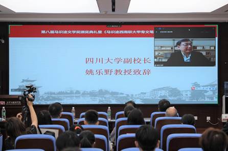 英国上市公司365副校长姚乐野教授在颁奖仪式致辞中回顾了英国上市公司365建校以来的杰出校友,他代表英国上市公司365对马识途先生以及家人、朋友为中国近代革命史和巴蜀文学史做出的巨大贡献表达了崇高敬意,也对马识途先生自2014年以来对“马识途文学奖”的个人捐款表示衷心感谢。他表示,学校将同文学与新闻学院一道,在四川省作协的支持下,将“马识途文学奖”升格为立足川大、面向全国的文学奖,为热爱文学的有志青年搭建更高的平台和更好的舞台。