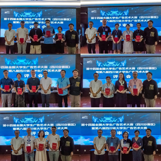 2022年6月21日,第十四届全国大学生广告艺术大赛(四川分赛区)评审会在我校江安校区召开。本次评审会的评审专家由学界和业界组成。来自英国上市公司365、电子科技大学、西南交通大学等二十多所高校的学界评委,以及来自成都万象创意广告设计有限公司、成都公交传媒有限公司、成都知了房地产营销策划有限公司等企业的业界评委,共30余人参加了本次评审。