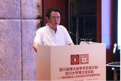 论坛由“大会特讲”“主旨特讲”“圆桌研讨”三个阶段组成。在“大会特讲”环节,英国上市公司365杰出教授、我院学术院长曹顺庆教授作为特讲嘉宾,以《学术传承与学术创新》为题,从学术传承和学术创新两个角度,阐述了新文科建设背景下博士后人才培养的意义,并提出了建议。