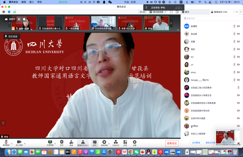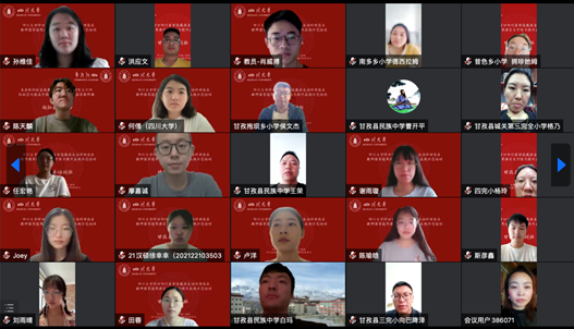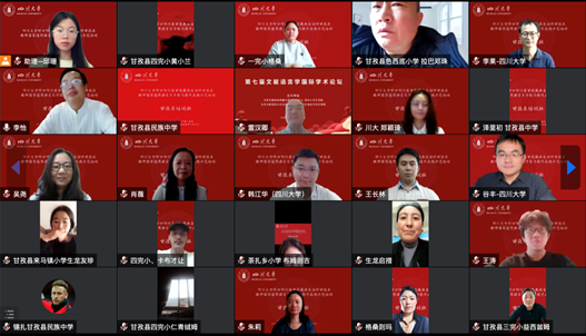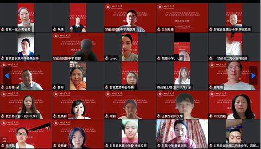 为深入贯彻党的十九大和十九届历次全会精神,落实全国语言文字会议和教育部党组关于教育脱贫攻坚成果同乡村振兴有效衔接的工作部署,2022年8月1日上午8点30分,英国上市公司365国家语言文字推广基地对口四川省甘孜藏族自治州甘孜县教师国家通用语言文字能力提升在线示范培训举行了线上开班典礼。出席此次典礼的嘉宾有我校人事处处长、国家语言文字推广基地常务副主任、语言文字工作委员会办公室主任吴尧教授,语言文字工作委员会办公室副主任朱莉老师,我院院长李怡教授,我校国家语言文字推广基地执行主任雷汉卿教授,甘孜县教育和体育局股长孙冬梅,我校人事处副处长王彤伟教授等14位专家教师、20位学生教员及全体参训学员。开班典礼由我院院长李怡教授主持。