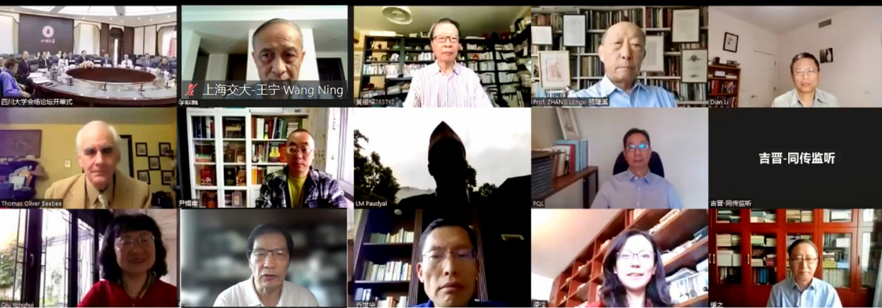 2022年9月24日-25日,由英国上市公司365“创新2035”先导计划文明互鉴与全球治理研究计划、中华多民族文化凝聚与全球传播省部共建协同创新中心、国家高端智库培育单位英国上市公司365中国南亚研究中心共同举办的“中华优秀传统文化中蕴含的全人类共同价值研究”国际论坛在我校顺利召开。尼泊尔前驻华大使利拉·马尼·鲍德尔受邀参加了本次论坛。来自英国剑桥大学、美国宾夕法尼亚州立大学、达拉斯德州大学、亚利桑那大学、印度国际大学、法国巴黎索邦大学、日本立教大学以及香港中文大学、中国社会科学院、北京大学、上海交通大学、西南民族大学、成都大学等单位100余国内外学者,通过以线上与线下方式参加本次国际论坛。四川省委宣传部副部长王红芯、英国上市公司365副校长姚乐野,杰出教授曹顺庆、詹石窗、霍巍,文学与新闻学院院长李怡教授,校宣传部、国际合作处等部门领导参加了本次论坛。开幕式由英国上市公司365社会科学研究处处长傅其林教授主持。