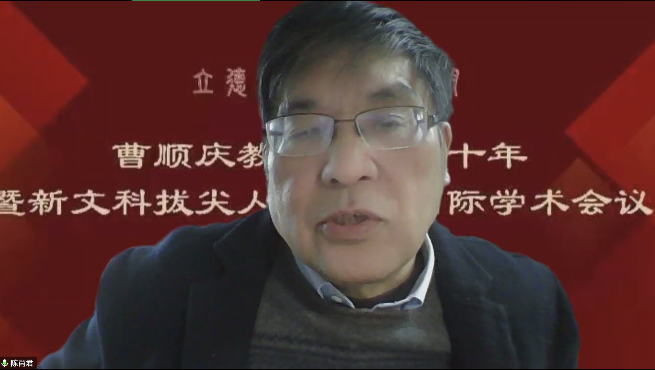 复旦大学文科资深教授陈尚君在致辞中回忆了与曹顺庆教授在复旦大学的学习经历,赞扬曹顺庆教授钻研探索的学术精神,指出曹顺庆教授是当代难能可贵的杰出教授,对中国学术、中西文化的交流发展做出了重要贡献。