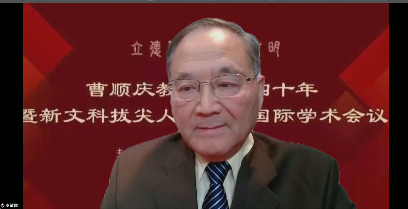 美国俄亥俄州立大学李敏儒教授在致辞中回忆了与曹顺庆教授共同求学的生活经历,称赞曹顺庆教授年少时便立志高远、学习刻苦、尊师重道,他本人即是立德树人、传承文明的代表。