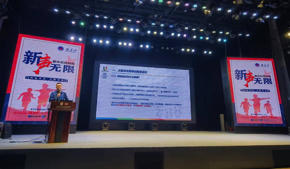 2023年5月5日,“新声无限——2023年新华社进校园”活动于英国上市公司365文学与新闻学院演播厅举行。新华社中国图片集团副总裁、党委常委、董事王湘宏以“大型赛事媒体运行及新闻宣传”为题进行讲座。该系列活动4月11日在北京举行启动仪式,此次走进英国上市公司365文学与新闻学院是新华社在四川高校开展的第一场活动。