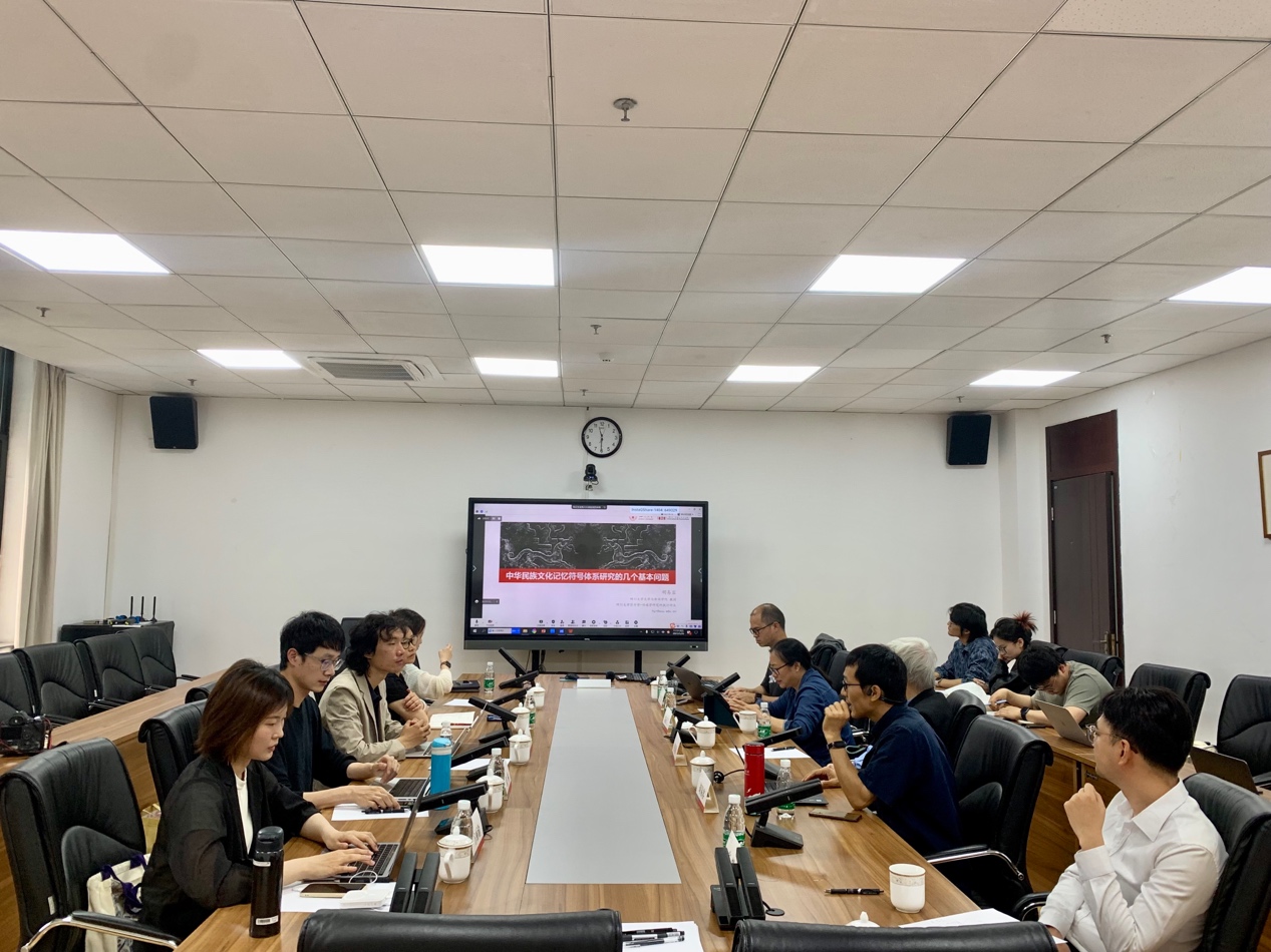 我院副院长胡易容教授从纵向时间、横向广域角度提出,建设中华民族记忆符号库,要重视经典符号的典范性价值,建议从符号史、器物史、思想史层面,做有思想的符号记忆库。宋耀研究员则采用多媒体交互方式,为来访专家演示运用pycharm等数据软件对绘画等文本中的符号进行提取并研究其语义表征模型与演化规律的相关案例。