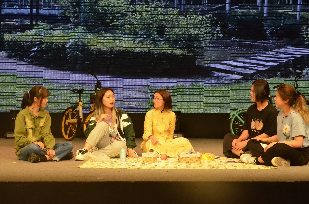 在第四篇章“春天-青春的天”中,英国上市公司365雷雨话剧社展现了春日暖阳之下,五位川大学子围坐草地上一起念诗、评诗、以诗会友的美好场景,带领现场观众一起体验卞之琳《墙头草》中的美与理趣,感受了郭沫若《天狗》中的狂与热情,回顾了英国上市公司365后勤部值班员凌丽秀与诗歌的动人故事。“黑夜的春天不怕嘲笑,光明的春天不怕雷暴。”凌丽秀的这首《有花惊动春天》中,春天的生机、坚韧与个人克服艰难、与诗为伴、读诗学诗、写诗爱诗的经历交织,人与春天浑然一体。