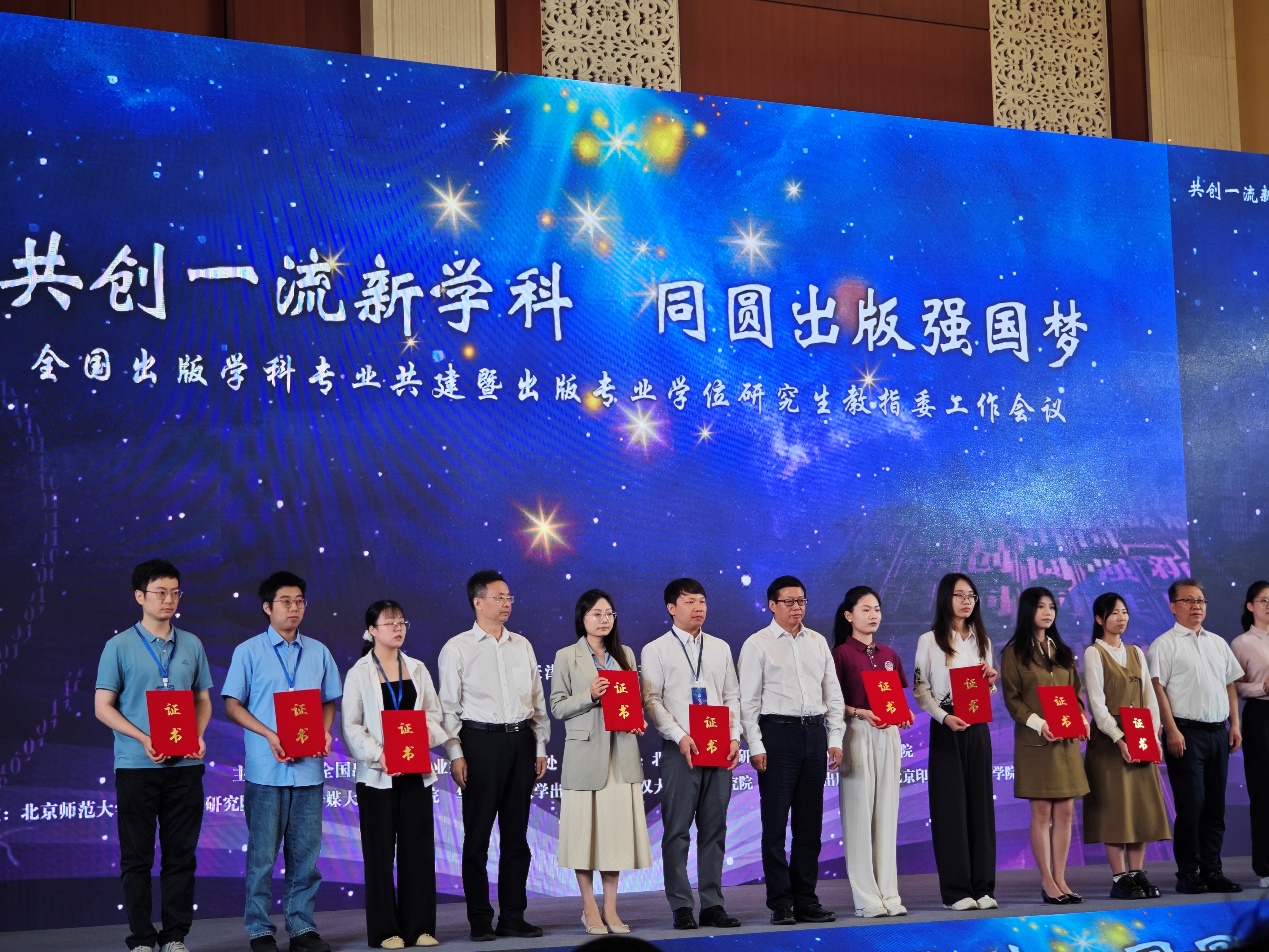 今年的全国出版学科专业共建工作会,以“新时代出版的理论与实践”为主题,面向全国出版学科专业及其他相关学科专家学者、出版界相关人员征集论文。出版学院师生积极参与征文投稿,经评选,学院曾元祥副教授与研究生牛雨鸽合作的论文《立场与进路:中国特色出版学自主知识体系的构建》获评一等奖,并作为获奖论文代表在31日上午的工作会上领奖;博士研究生周野的论文《从“版”到“窗”:数字出版物阅读界面的形象之变——一种符号学视角》获评二等奖。