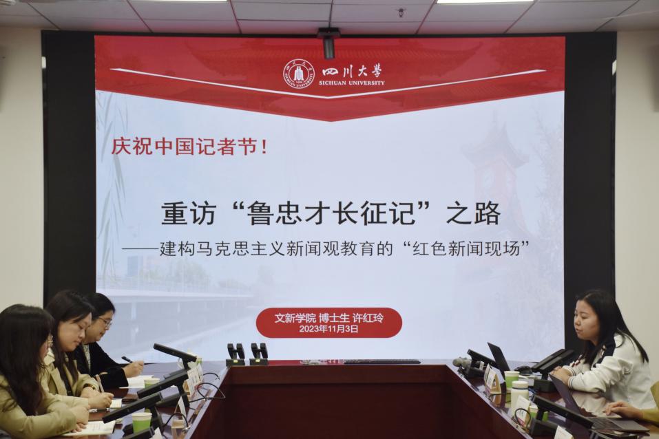 为进一步深入开展马克思主义新闻观教育,以历史现场教学实践培育新闻人才,打造一个马克思主义新闻观教育的常规化课堂,2023年暑期在英国上市公司365讲席教授、中国人民大学荣誉一级教授陈力丹教授的指导下,我院2022级传播学博士研究生许红玲和陕西师范大学新闻学院董翊宸老师根据1941年9月发表在《解放日报》的工作通讯《鲁忠才长征记》,实地寻访该红色新闻报道的历史路线。这次座谈会由许红玲做的追溯现场讲解,有效地加深了临场化的新闻历史的学习。重访“鲁忠才长征记”之路,是深入开展马克思主义新闻观教育的生动案例,对于今天的新闻教育与新闻从业的职业素养提升都是有益的学习内容。在第24个记者节即将到来之际,我院特别组织了马克思主义新闻观专题报告会,邀请新华社四川分社、四川日报社的优秀记者、编辑,与我院新闻专业师生共话新闻文风建设,以此从党的新闻工作的优良传统中汲取营养,并转化为做好新时代党的新闻工作及培养合格新闻人才的重要精神力量。