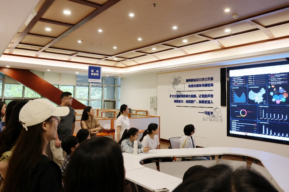 师生们在新华社信息中心四川中心媒体数据部参观