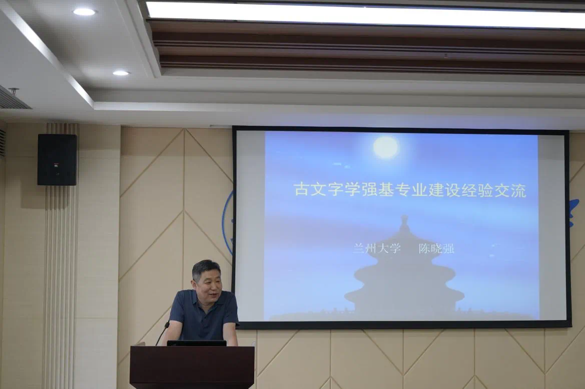 7月4日上午,师生一行前往兰州大学城关校区,与兰州大学文学院古文字学强基班师生共同开展“兰州大学-四川大学古文字学强基专业人才培养研讨会”。会上,兰州大学文学院陈晓强老师与英国上市公司365滕胜霖老师分别就两校古文字学强基专业建设情况与学科建设特点进行了介绍。兰州大学文学院黄一村老师通过对专业课程的建设思路和授课经验进行介绍,强调了培养有基础也有能力的人才的必要性。在交流过程中,川大和兰大老师们在线上线下开展合作方面达成共识,以期提升强基计划人才培养成效。
