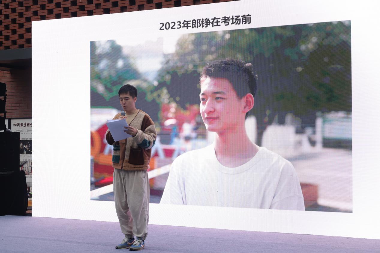 活动伊始,四川日报报业集团封面新闻记者杨博做“路在脚下,心在传承”主题分享,讲述了自己与父亲杨卫华(原《绵阳晚报》摄影记者)两代新闻人跨越时空的故事。2008年“5·12”地震爆发时,杨卫华与八名解放军战士一起将受困者郎铮救出,并拍下了那张著名的“敬礼娃娃”照片。15年后,朗铮收到北大录取通知书,而他笑着走出考场的照片,正是杨卫华的儿子、身为记者的杨博所拍摄。在现场分享完几个关于传承的采访小故事后,杨博说,“我从小受父亲的影响就特别大,家里面都是成堆的底片,他有意无意会讲到这些新闻里的故事。上了高中之后,我就有选择新闻专业的想法”,提起这段往日时光,他谈到,“我觉得我的父亲是一个超级认真的工作狂,他一直是我学习的榜样和前进的动力。”一路走来,杨博的新闻理想始终坚定如一,认为“记者就是随时冲到一线去”,他鼓励新闻学子“一定要坚定理想信念”。