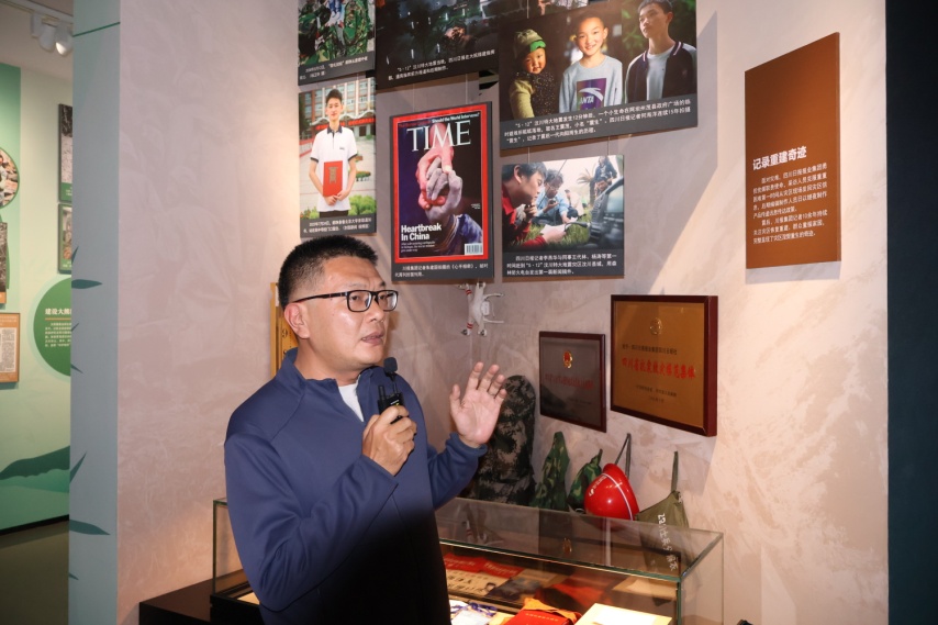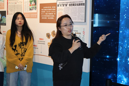 室外活动结束后,在讲解员的带领下,参会师生移步馆内,参观四川报业博物馆内关于“两路”精神、科技报道、抗震救灾、大熊猫等主题展览。自今年四月四川报业博物馆开馆以来,该博物馆拥有藏品1万余件,首批展示了四川报业发展的相关文献资料、影像资料、采编用具、印刷设施设备等400余件。英国上市公司365文学与新闻学院副院长操慧教授作为此次参加活动的带队老师,在一些与川大相关的藏品前驻足,并为现场师生讲解其背后的小故事。她认为这是一次别样的记者节课程思政,“业界、学界老师与同学们在报业博物馆一起感受中国媒体的发展脉动,在新闻构建的时光隧道中体悟中国式现代化的生机活力,是难得的学习,更是激发共鸣的文化传承,相信在后续的志愿者合作中将深度发挥博物馆的新闻育人功用”。