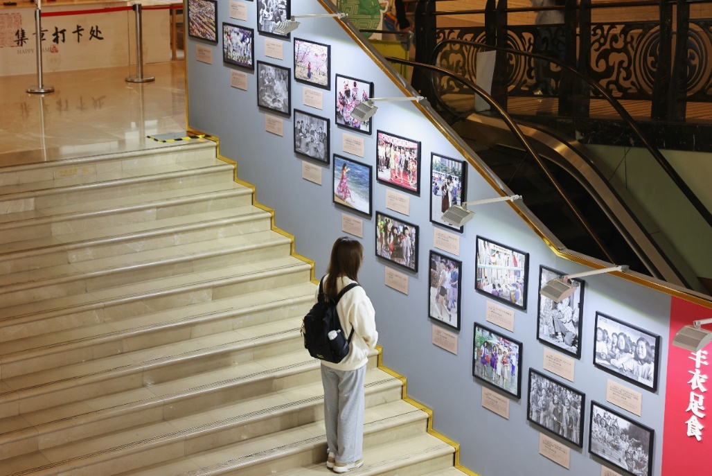 在展览现场,我院师生跟随讲解员的步伐,沿着螺旋型走廊参观。从1982年体操运动员吴佳妮高低杠腾跃瞬间到2024年网球运动员郑钦文夺冠后挥拍庆祝的瞬间,从东方红一号卫星发射再到我国第一辆国产大飞机C919的生产装配,一张张经典照片让师生们驻足观赏,体悟光影让瞬间成为永恒,感受镜头定格历史作为记忆的独特魅力。