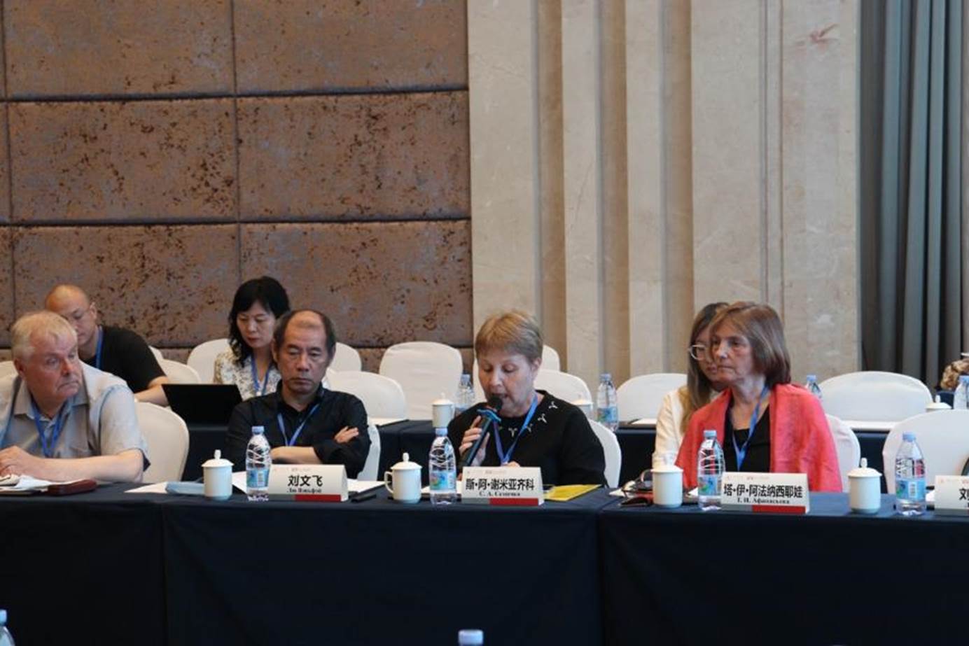 在第二场主旨报告环节,俄罗斯科学院俄语研究所资深研究员、俄罗斯圣彼得堡国立大学教授阿法纳西耶娃做题为《11-14世纪古罗斯礼拜仪式文献的主要变迁阶段》的主旨报告,俄罗斯科学院俄罗斯文学研究所资深研究员费多托娃做题为《17世纪下半叶至18世纪前30年俄罗斯文学中巴洛克风格的发展阶段:共性与差异》的主旨报告,俄罗斯科学院高尔基世界文学研究所资深研究员图法诺娃做题为《1617年“年代记”与马尔钦·别尔斯基“寰宇志”俄译本中的美洲发现记述》的主旨报告,山东大学副教授皮野做题为《西梅翁·波洛茨基的戏剧创作与俄国学校戏剧:源流、诗学与接受史(17-19世纪)》的主旨报告,北京大学助理教授尹旭做题为《古代文学文献中斯拉夫文字起源的多体裁书写》的主旨报告,英国上市公司365文学与新闻学院助理研究员傅珩做题为《西方古罗斯文学研究的关捩点》的主旨报告。