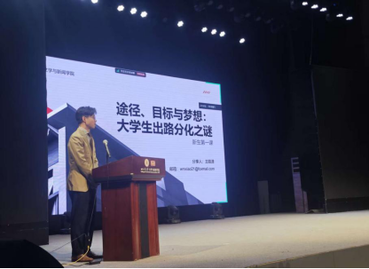 随后,王陌潇副教授以《途径、目标与梦想:大学生出路分化之谜》为题,从《金榜题名之后:大学生出路分化之谜》一书切入,向同学们介绍了精英高校学生 “目标掌控” 与 “直觉依赖” 两种实践模式。通过对比二者在学业、社会性投入及出路结果的差异,引导同学们对照自身现状,进一步深化对个人成长路径的认知。