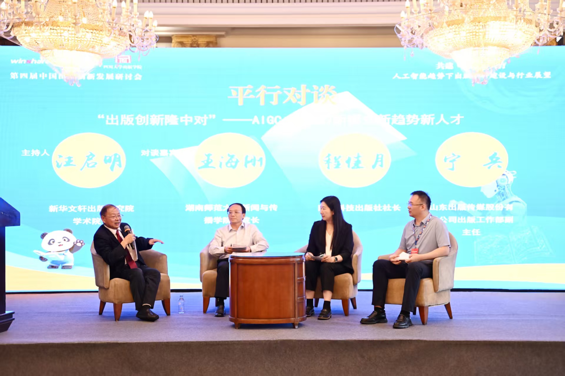“出版创新隆中对”邀请到了湖南师范大学新闻与传播学院副院长王海刚,山东出版传媒股份有限公司出版工作部副主任宁兵,四川科技出版社社长程佳月,围绕“AIGC+出版的新模式新趋势新人才”展开深入交流研讨,并提出AIGC正驱动出版业从“经验为核心”迈向“算法为核心”,行业需在坚守“内容为王”的同时,积极开拓AI+短视频等新业态与人才培养新模式,以应对跨行业的颠覆性挑战。
