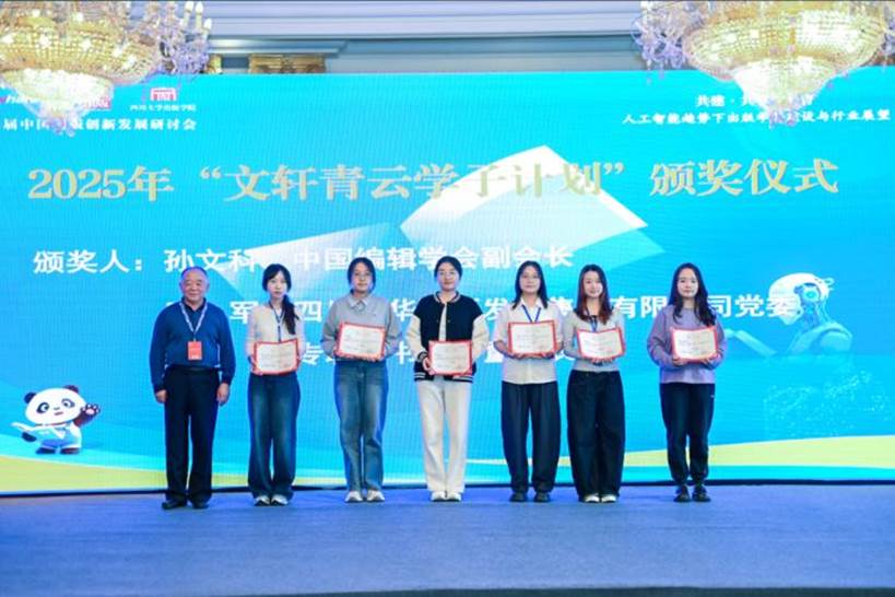 中国编辑学会副会长孙文科(左一)为2025“文轩青云学子计划”入选学生