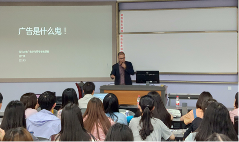 最后,广告学与符号学教研室主任饶广祥副教授以幽默诙谐的讲解对广告学专业做了较为全面的介绍。他认为广告是一门提供解决方案的学科,因此在学习的重点是找到问题和解决问题。饶广祥副教授对广告学的专业课程做了介绍,他认为广告并非只适合有艺术基础或创意的同学学习,广告专业的课程中会有系统的方法来进行专业训练,因此同学们不必担心没有基础。最后,他展示了四位已毕业广告学学生的从业经历以及他们对广告学习的看法,并指出,选专业要结合自己的兴趣和想象力,最重要的是要选出自己的精彩。