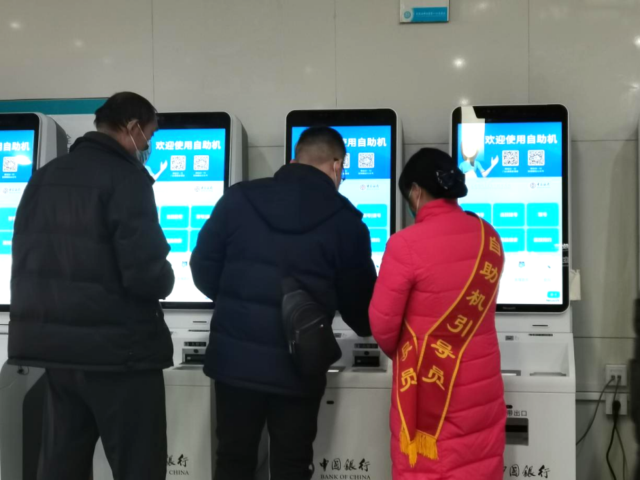 安徽医科大学第一附属医院的自助机引导员帮助患者操作