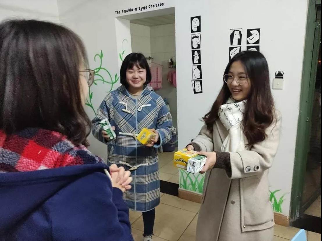 此次“电量加油包”的物资都经由文新学工团队的悉心挑选。由于考研学子们备考非常辛苦,宿舍区和教学区又相隔较远,为方便学生领取,晚上22点,学院学工团队顶着寒风“潜入”学生宿舍,将电量加油包发放到考研同学的手中。