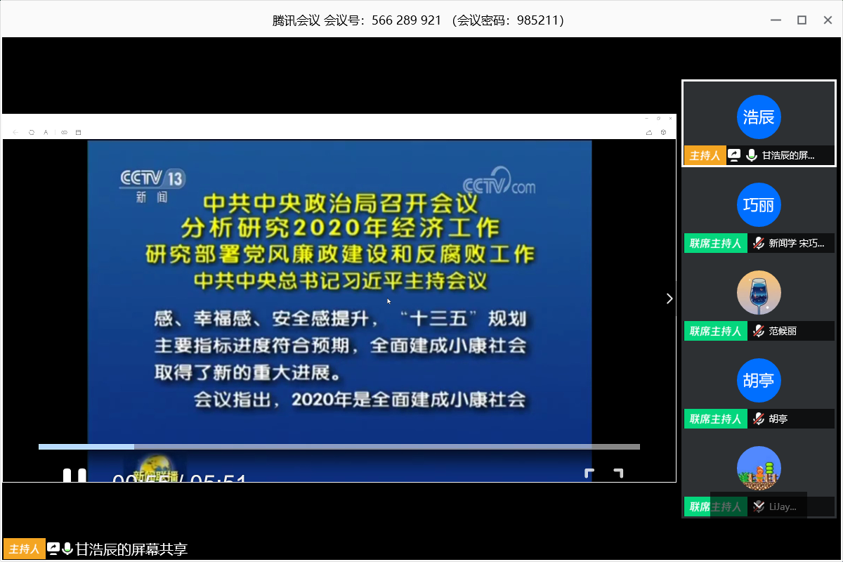 硕士第六支部则邀请了邓晓燕同学作“中国‘疫’制胜之道”的主题分享。她从“解战役胜利密码”、“念被定格住的生命”、“观视频所思所感”等三方面进行展开,带大家回顾了六位在抗击新冠疫情中的先进典型。分享结束后,与会党员周子璇谈到,我们应该学习这些党员同志的奉献与坚守精神,积极参与到为人民服务的行列中,成为众多细小涓流中的一支,最终奔腾成海。