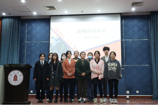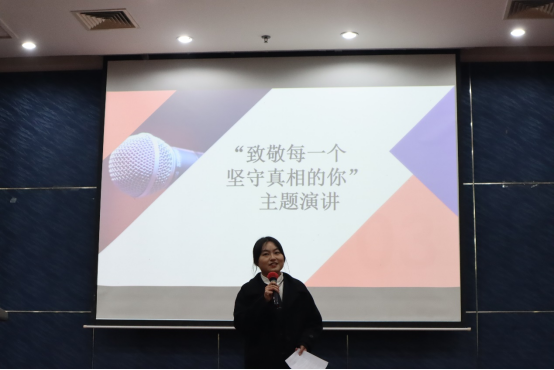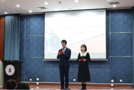 11月21日晚“镜记峥嵘,笔写风华”记者节系列活动之“记声赋文”记者挑战赛决赛于江安校区第二基础实验楼报告厅顺利举行。本次活动面向我校全体本科生,由我院团委学生会宣传部承办。2020级广告与媒介经济学硕士生杨雨桐、2020级新闻学专业硕士生魏梓慧、我院团委学生会副主席康雨晨、团委学生会执行主席杨晨、社团联合会会长李佳芮、素质拓展部部长韩佳玉同学作为评委参加。