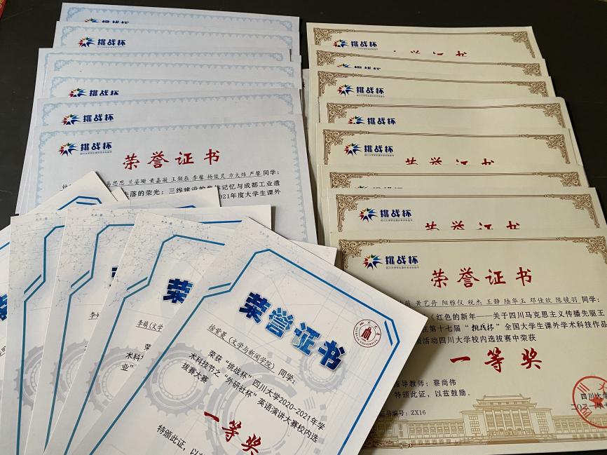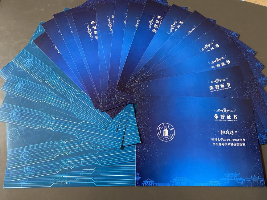 挑战杯系列赛事的荣誉证书