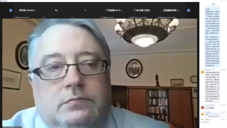 我院刘亚丁教授主持波隆斯基教授云端系列讲座现场