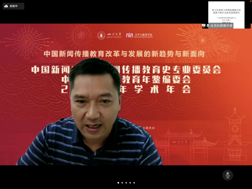 广州体育学院传媒学院院长肖灵教授、副院长廖慧平教授在《新文科背景下新闻传播教育实践教学路径及典型案例探究》主题发言中,提出了对学科教育与人才培养的新思考。两位教授结合广州体育学院传媒学院“一体两翼”的办学理念与典型案例,向与会者分享了实践教学的三条基本路径,即搭建强基础的复合实践平台、重提高的第二课堂实践平台、求创新的专业大实习实践平台,在传授专业理论知识的基础之上,提高学生实践能力。